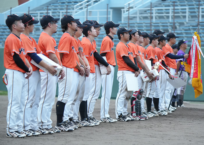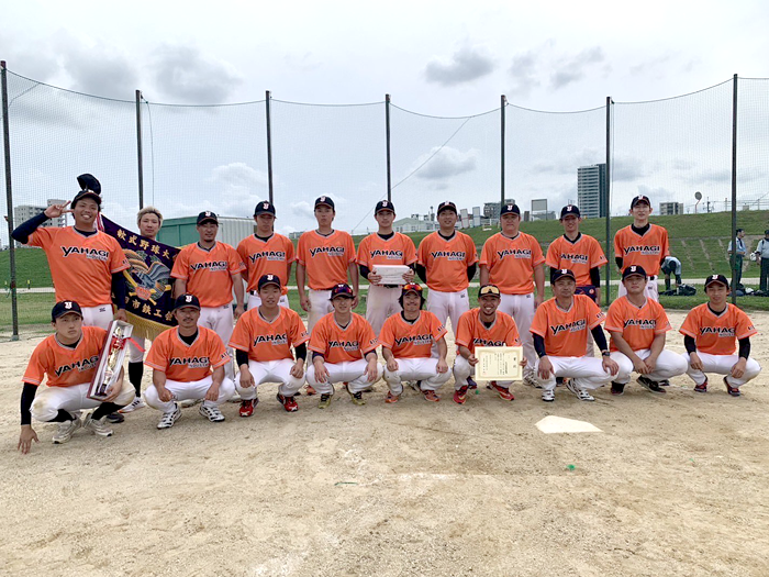 スタンドでは社員が応援に駆け付け、最後に優勝旗とともに記念撮影を行いました。