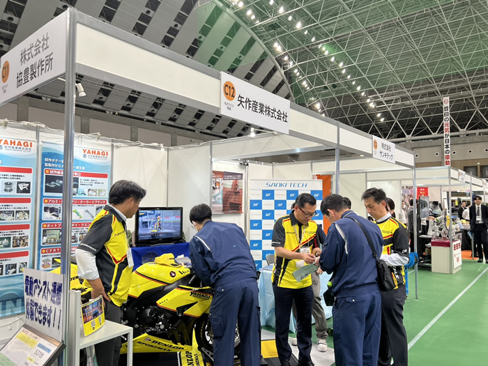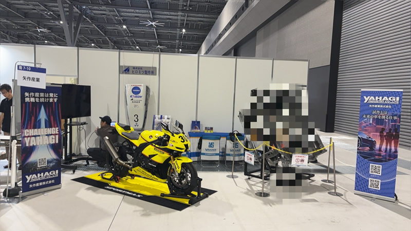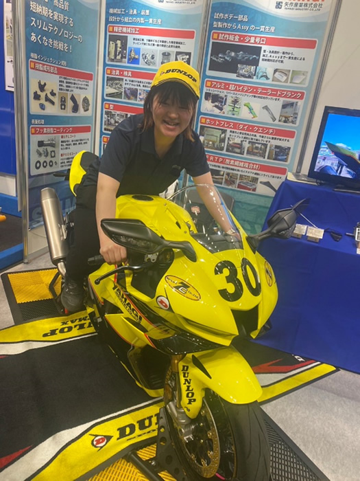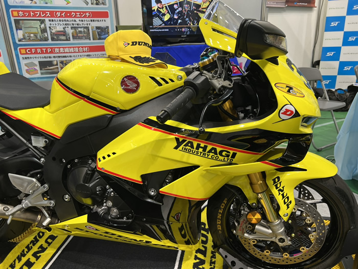 例年は、矢作産業の技術についてPRしていたのですが、今年は「DUNLOP Racing Team with YAHAGI」のレースバイクの展示を行いました。
