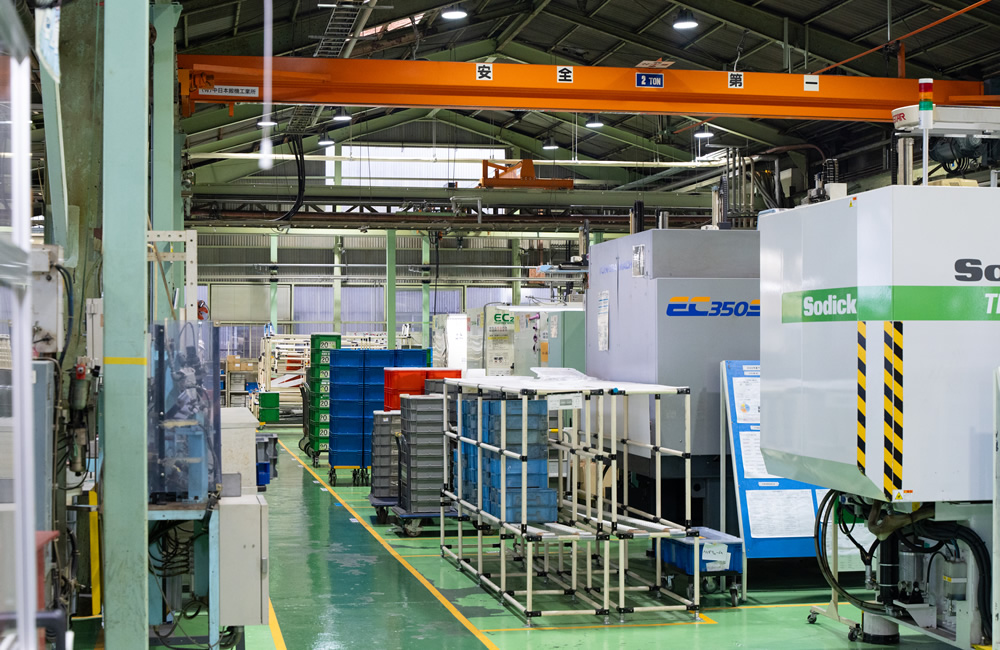 工場内は、主にエンジンまわりのフッ素樹脂コーティング部門、同じくエンジンまわりの樹脂成形の部門に分かれ、少量号口と呼ばれる量産品も製造。