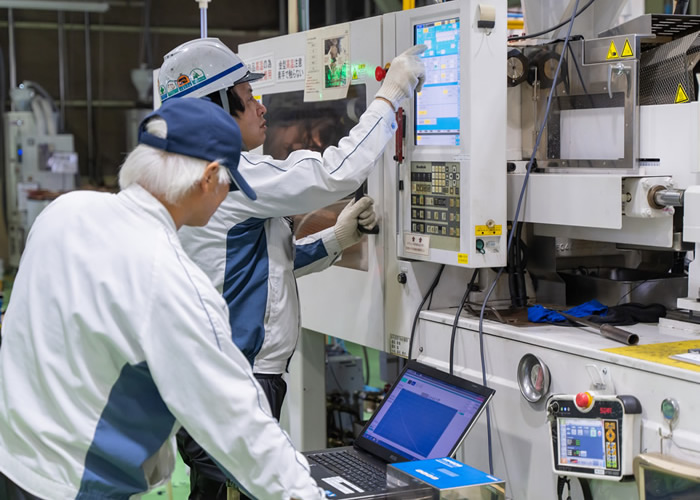 樹脂成形では熱がポイントとなるため、温度管理も徹底し、入れるスピードなどタイミングも調整。